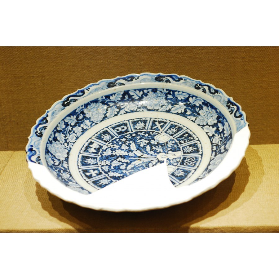 蓝地白花八宝瓜果纹大盘