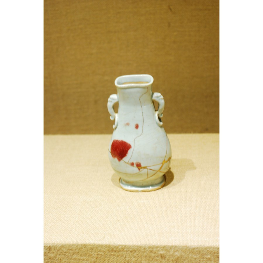 点彩釉里红象耳衔环扁瓶