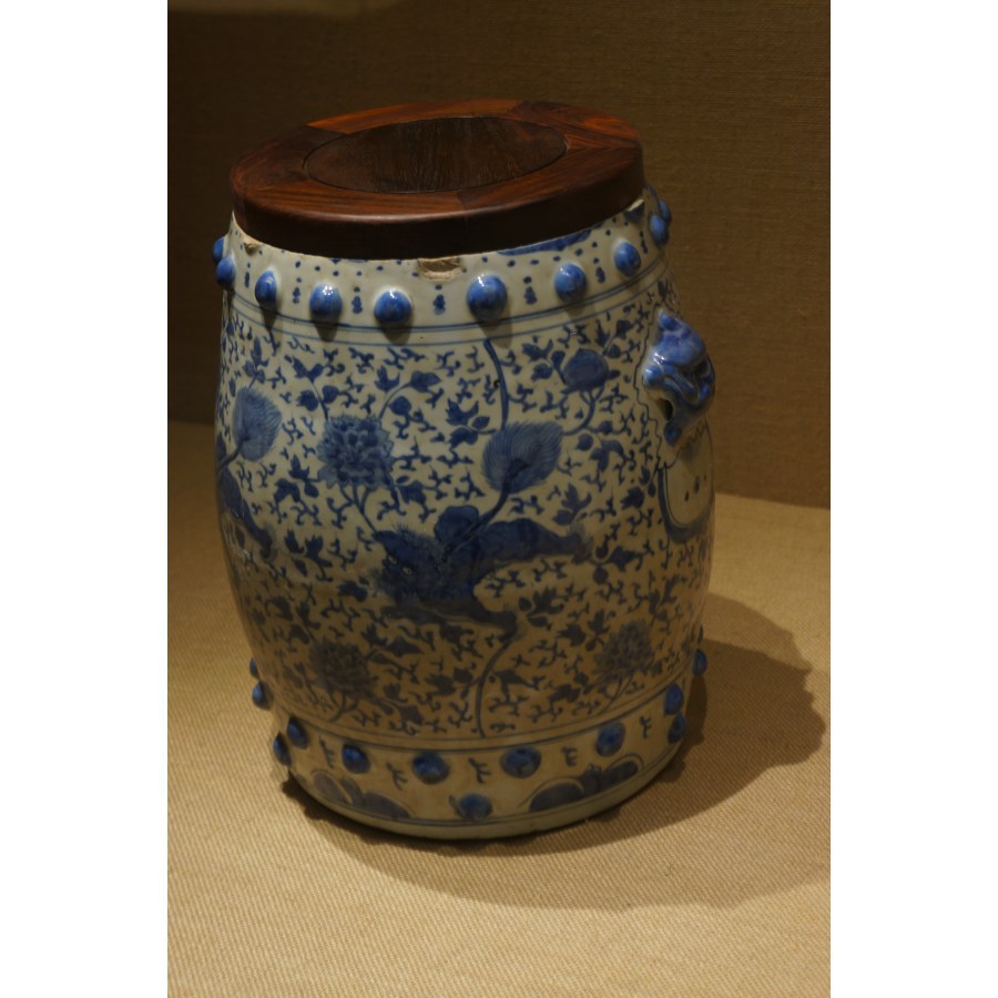 嘉靖青花瑞兽双狮辅首绣墩