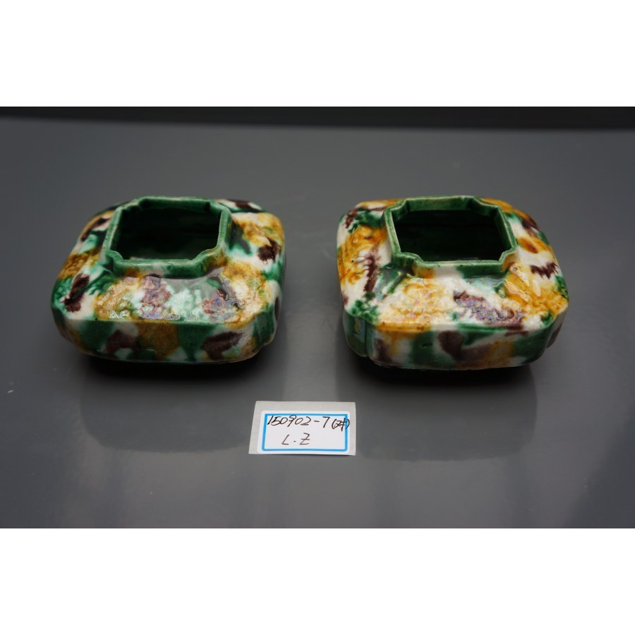 康熙素三彩四方倭角罐一对