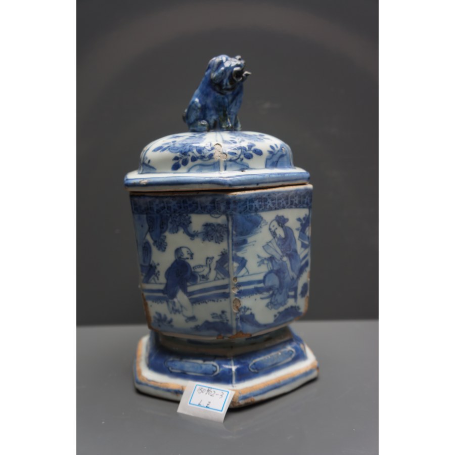 六方器物,四部分组成,青花人物,又是焚香雅具,都构成了此件瓷器的珍稀性,较为罕见。