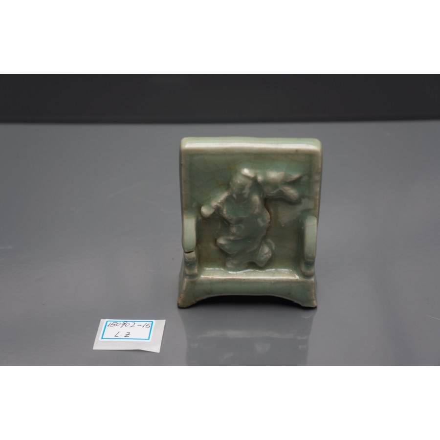 龙泉窑贴素人物小香插,窑址在浙江,古代文人案桌上摆放之用。纹饰为东方朔偷桃,东方朔偷桃的典故源于以下传说:汉武帝寿辰之日,宫殿前一只黑鸟从天而降,武帝不知其名。东方朔回答说:“此为西王母的坐骑‘青鸾’,王母即将前来为帝祝寿。”果然,顷刻间,西王母携7枚仙桃飘然而至。西王母除自留两枚仙桃外,余5枚献与武帝。帝食后欲留核种植。西王母言:“此桃三千年一生实,中原地薄,种之不生。”又指东方朔道:“他曾三次偷食我的仙桃。”据此,始有东方朔偷桃之说。东方朔并以长命一万八千岁以上而被奉为寿星。后世帝王寿辰,常用东方朔偷桃图庆典。