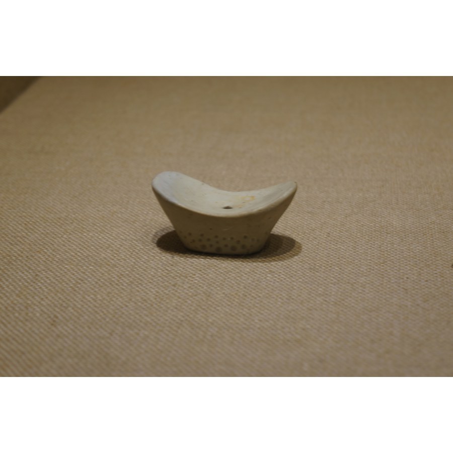 一般而言素瓷的胎质一定很细,油性甚好,元宝造型得百姓喜爱,寓意有财。这件素瓷元宝可作为香插使用。