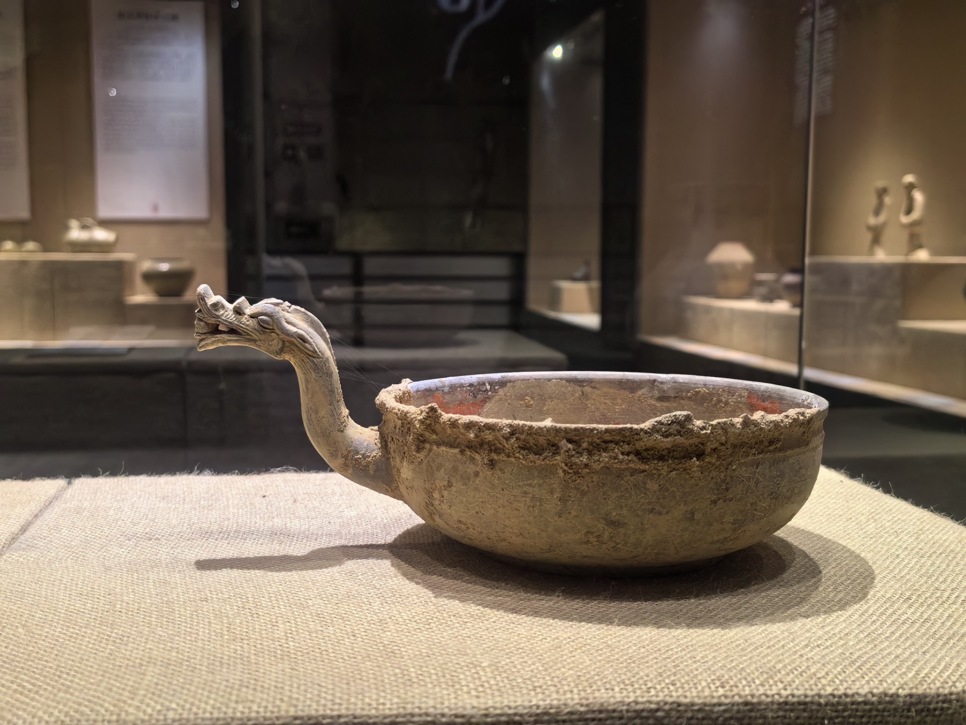 该瓢的把柄设计成龙首唅珠,整体制作也是十分精细和完美的,这样的造型在古代同类陶瓢中罕见。