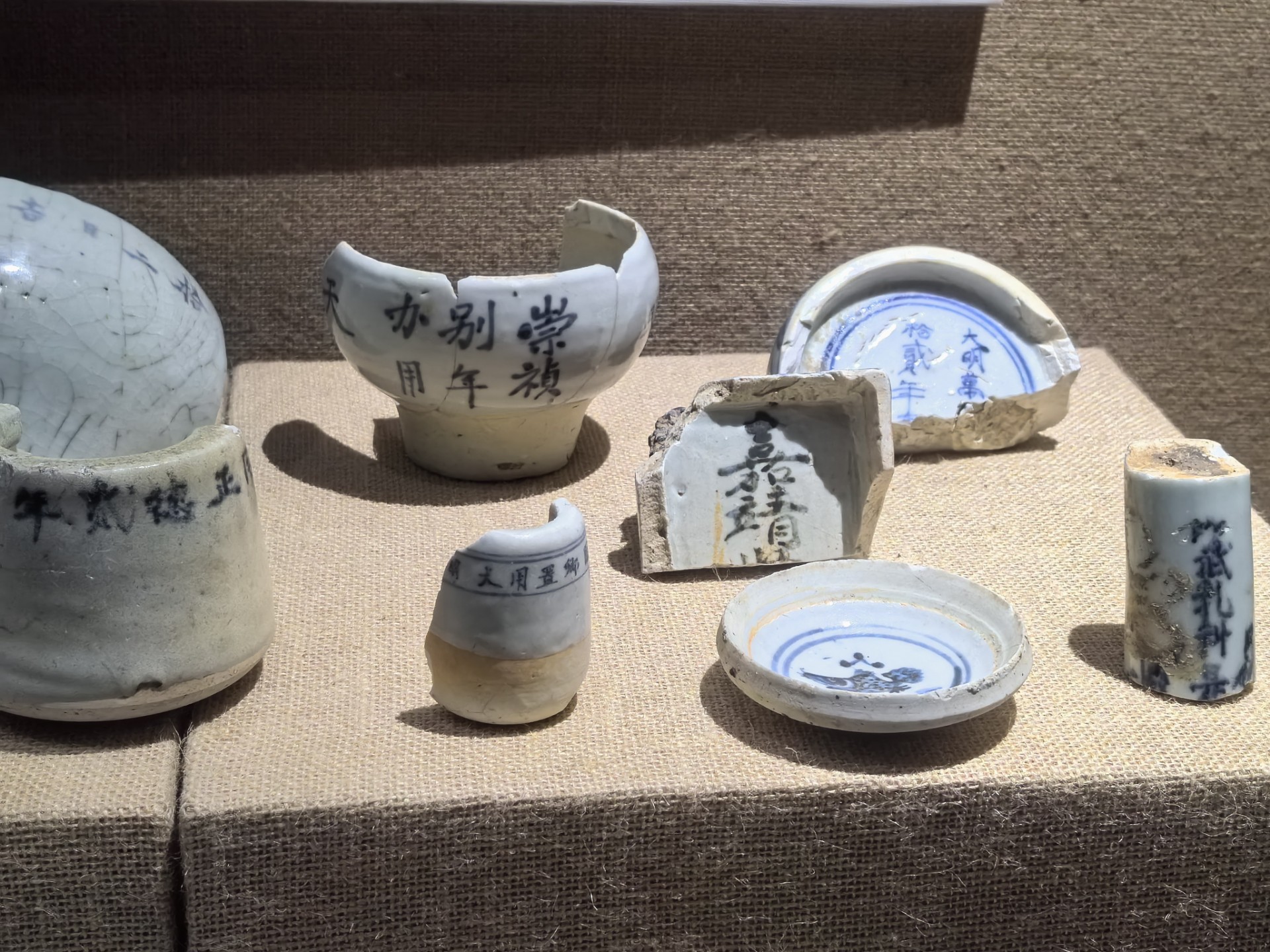 这个展柜非常有看头,通过文字或纹饰,给我们提供很多信息,供我们研究和欣赏。书有“洪武”、“永乐”字样的纪年号的瓷器很少见。