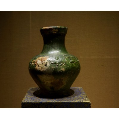 这是东汉的绿釉兽纹罐,施有低温铅釉的陶器,釉层透明,釉面光亮,但化学稳定性差,所以不适合作实用器皿,多用作冥器。汉代陶罐多以素胎为主,在器物上有纹饰又上釉,很少见。