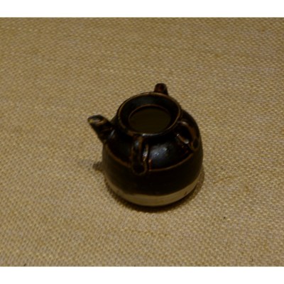 吉州窑双系小壶,壶,基本造型为小口直颈,球形或扁圆腹,平底或圈足,也有三足的。吉州窑在江西吉安,建阳窑是南方窑口,它们都是黑釉,胎质不同。通过对比,很容易就能看出两者区别。一般而言南方窑口的东西制作精细,北方窑口的就要粗糙很多,这跟南北文化经济发展也是有关的。